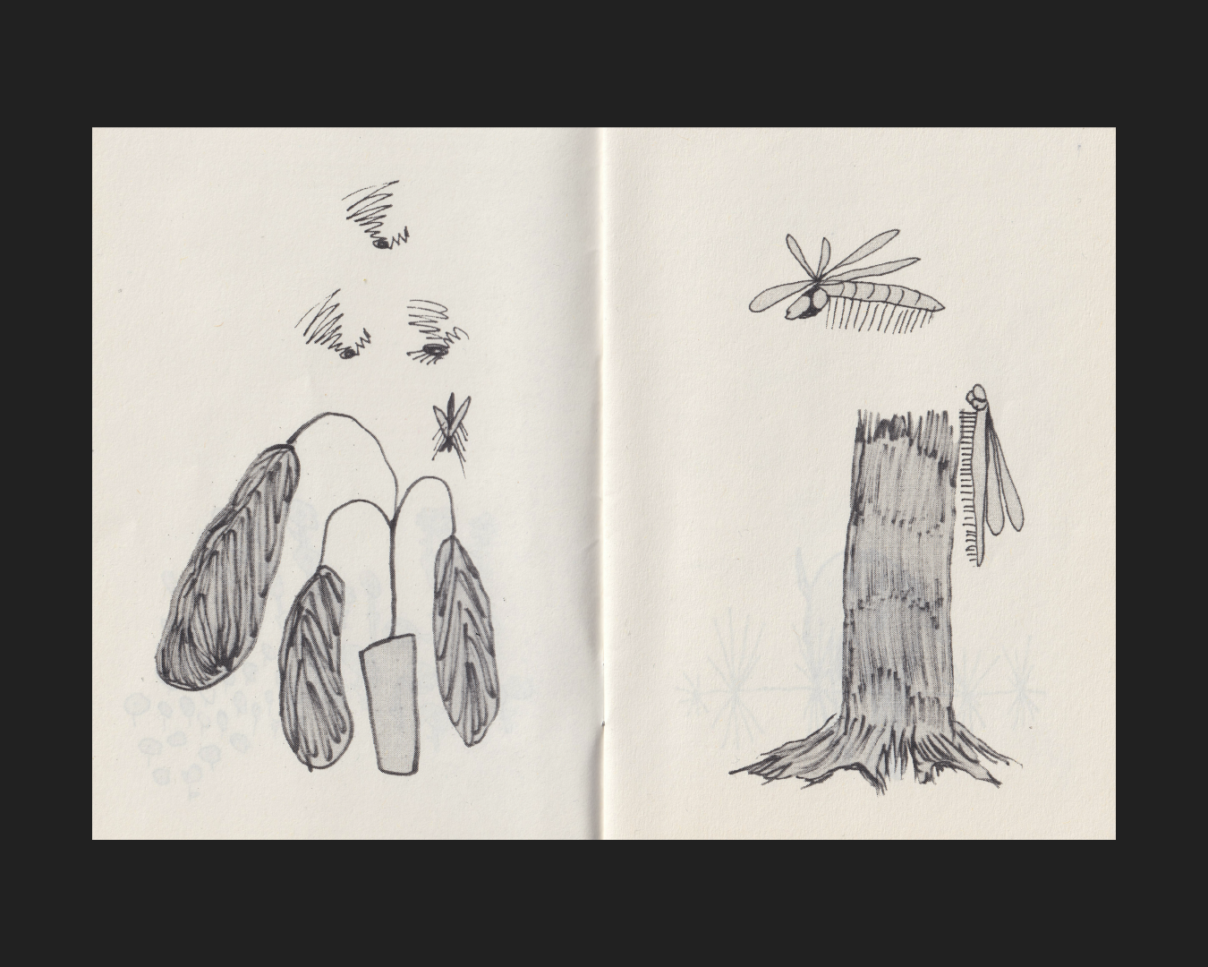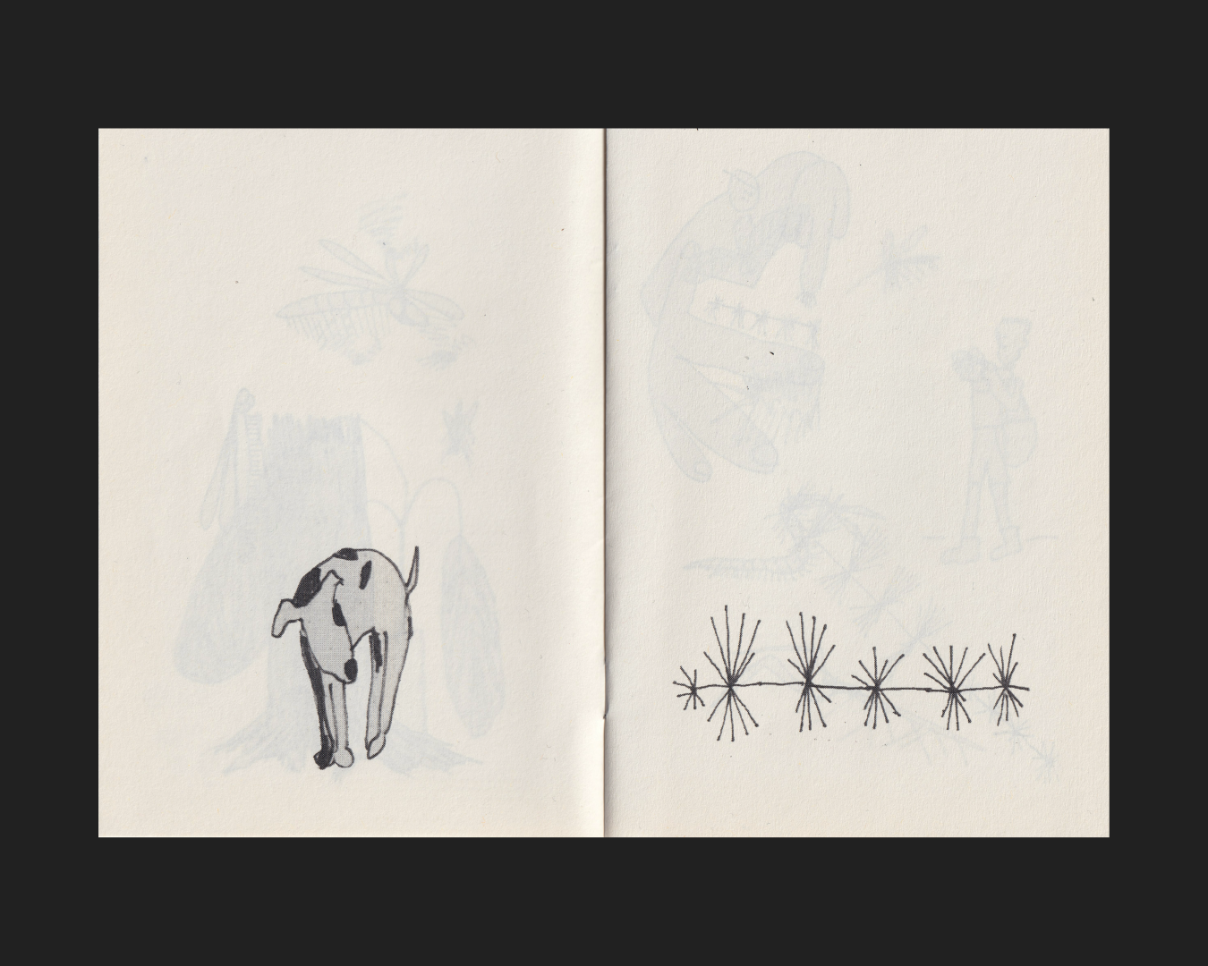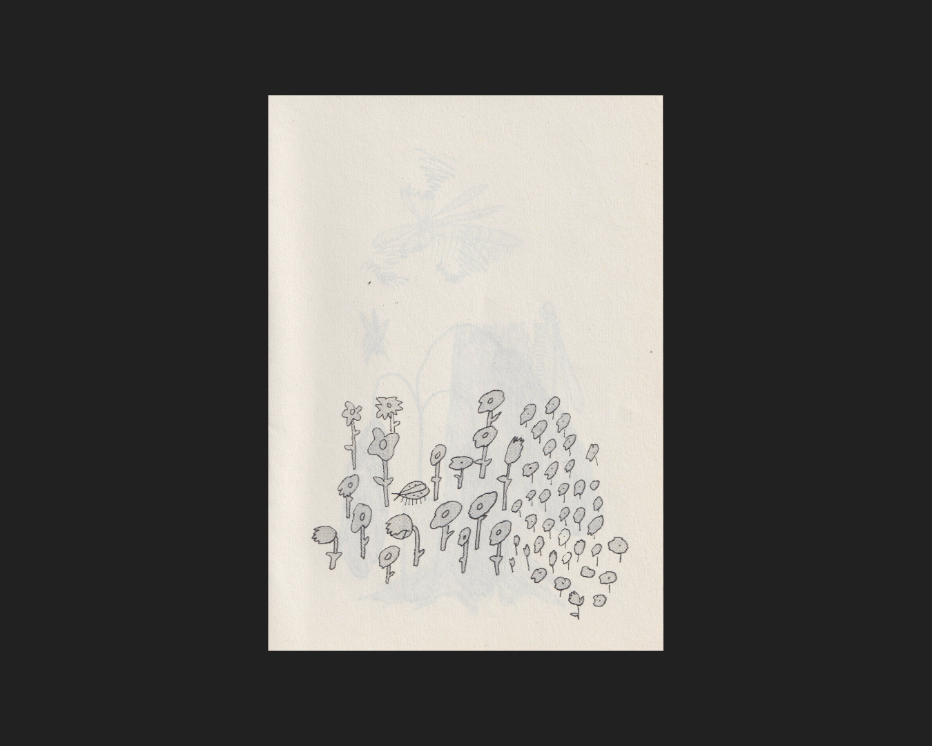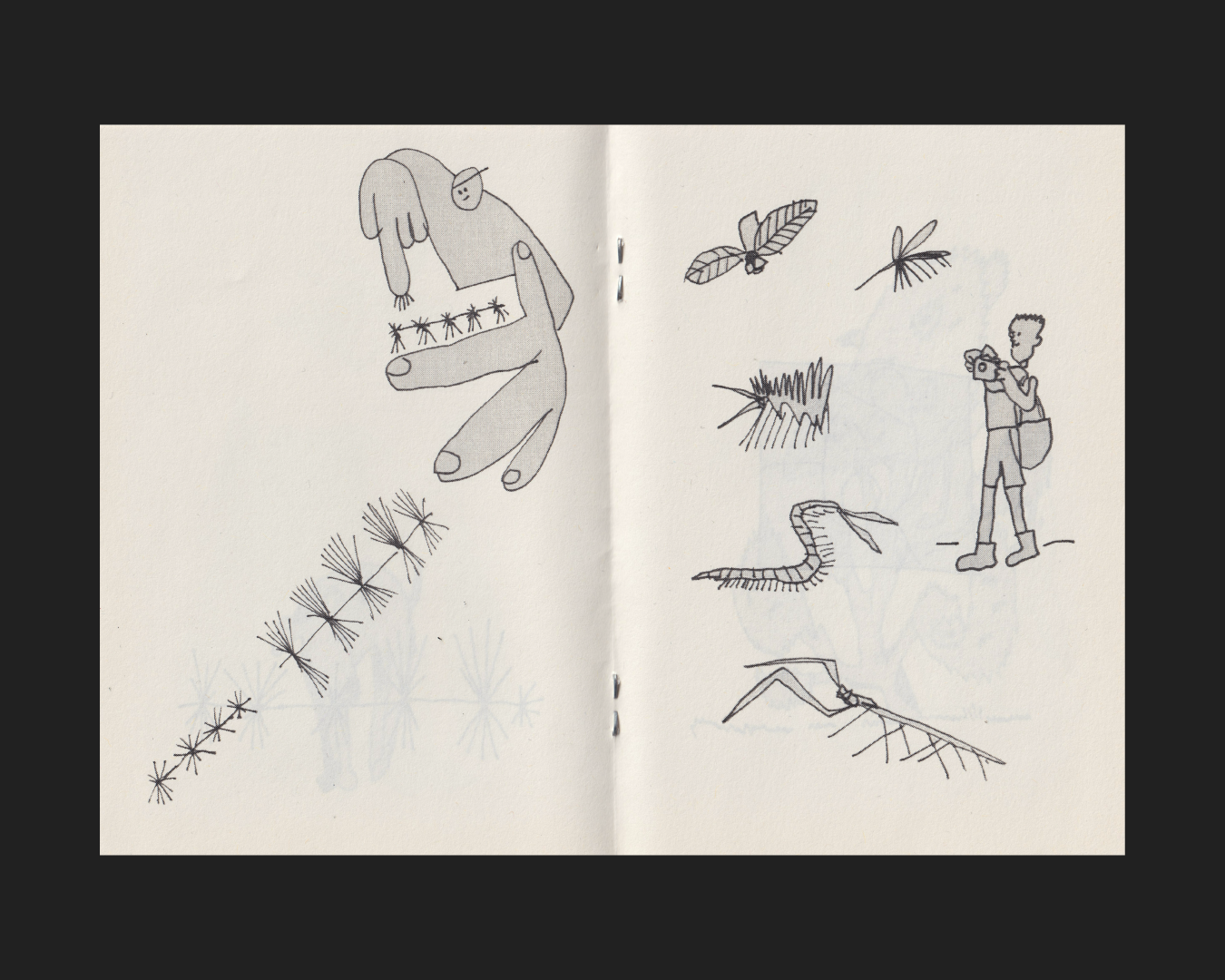 This fanzine is made up of many illustrations from different sketchbooks, I chose the illustrations and drawings and put all together and through a consistent graphic style, we embark on a walk through the countryside. We encounter plants, animals, and how humans relate to nature.