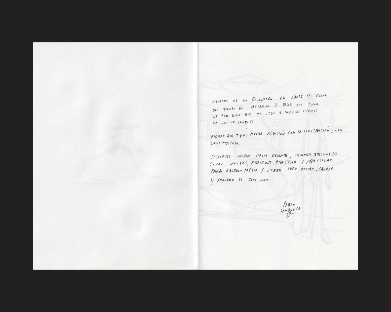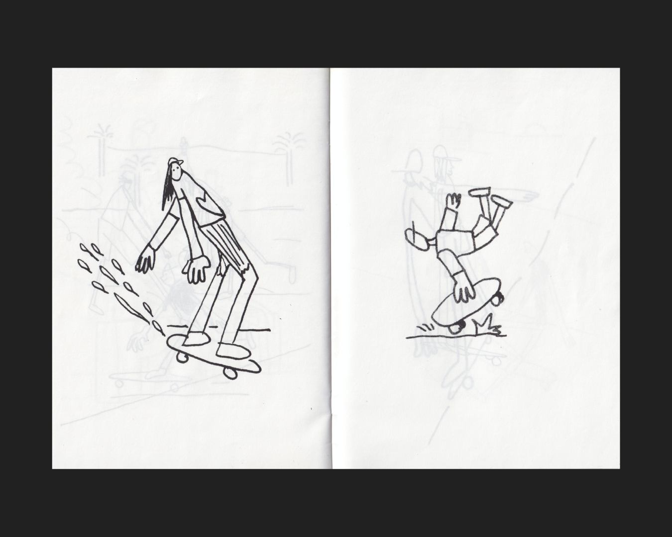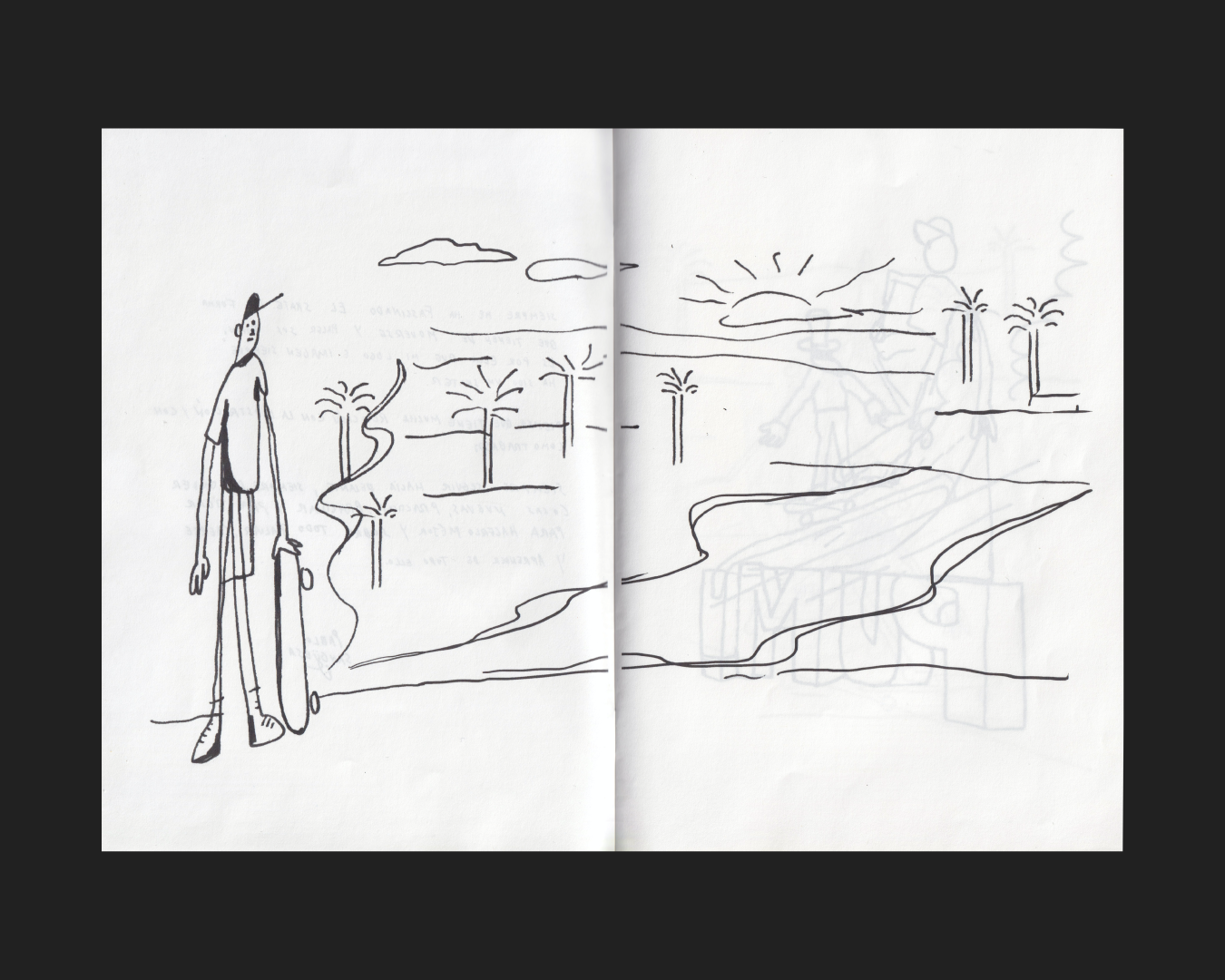 Una historia de verano y skate is a self published zine made with illustrations from different sketchbooks. This visual narrative project draws a parallel bettween my work as an illustrator and the skateboarding.