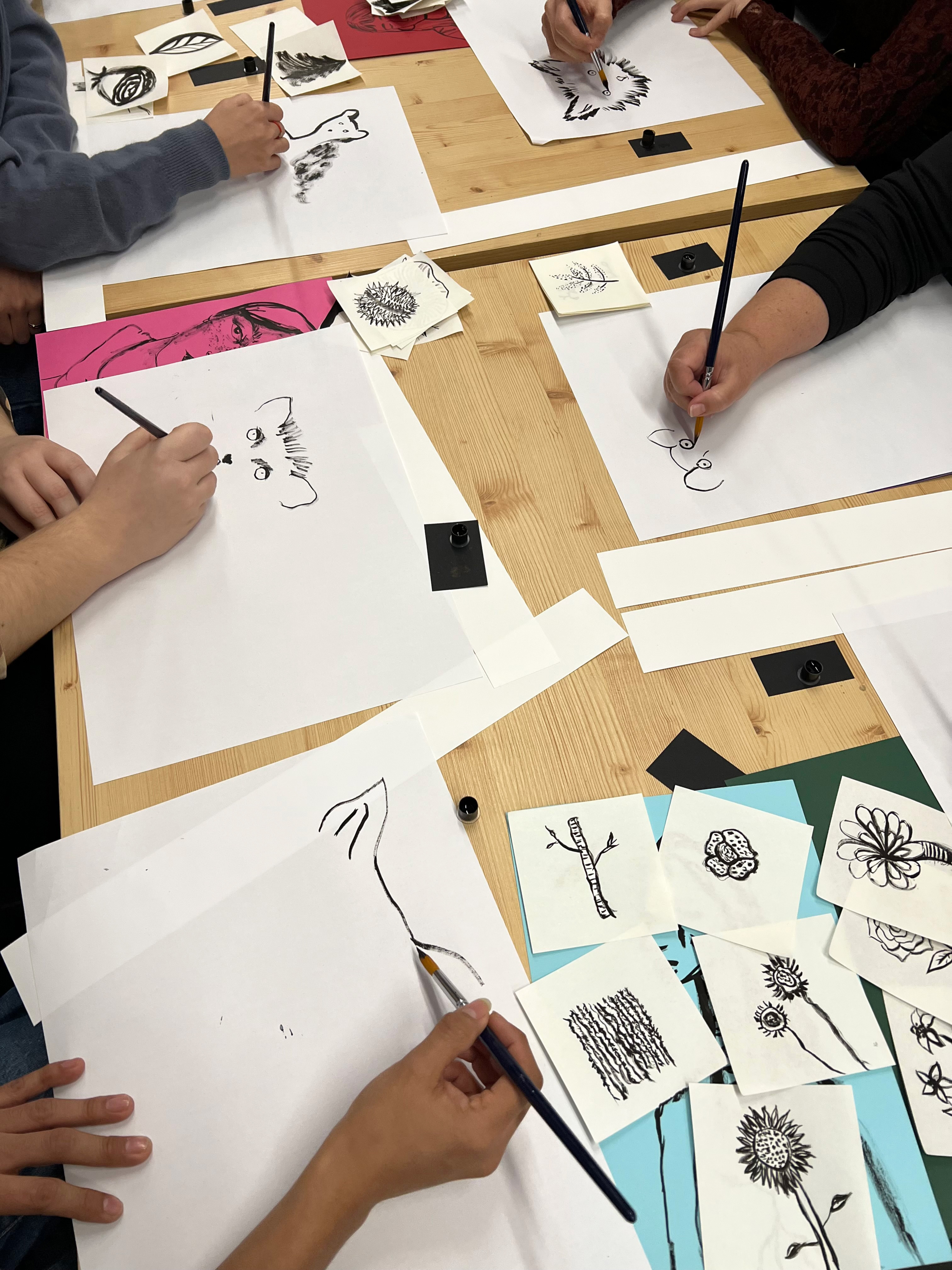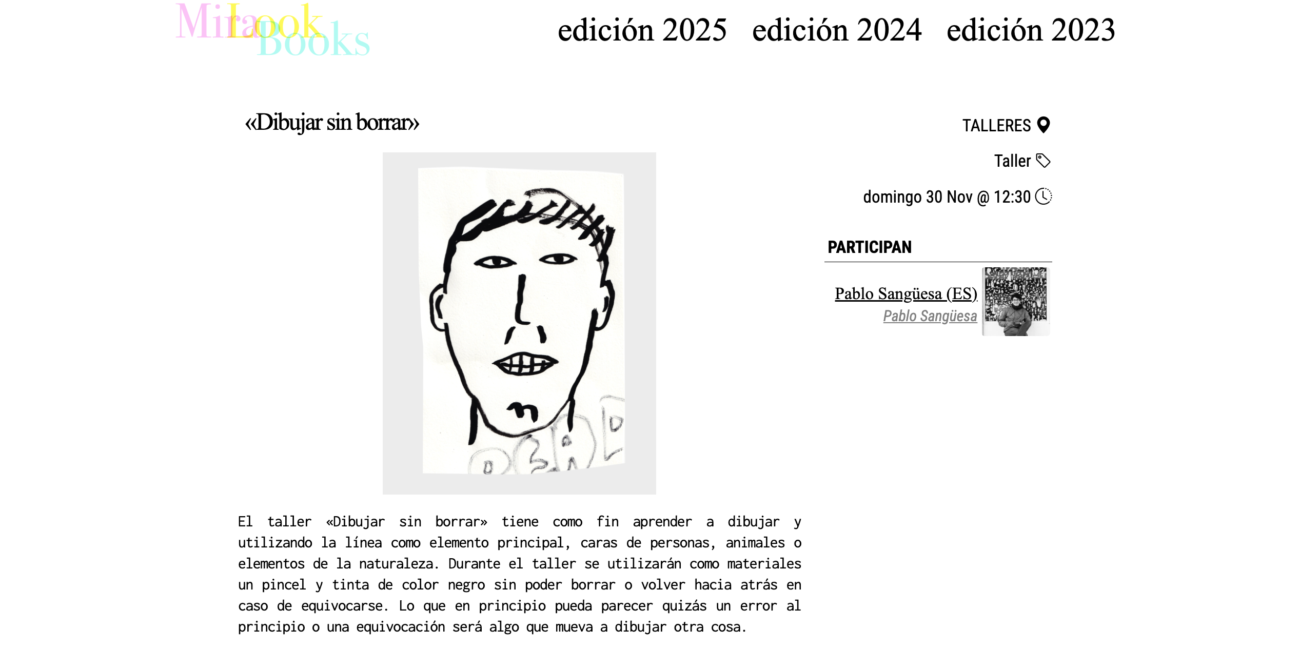 Draw with out erasing is a workshop that I introduced at the Mira Look Festival 2025 in Madrid. In this workshop I teach how to be fearless about making mistakes when we draw and what we can learn about the process of drawing by focused in enjoy the process and no worry anout the final result. We use ink and a pencil which is a technique that you can not erase and you just have to keep going.